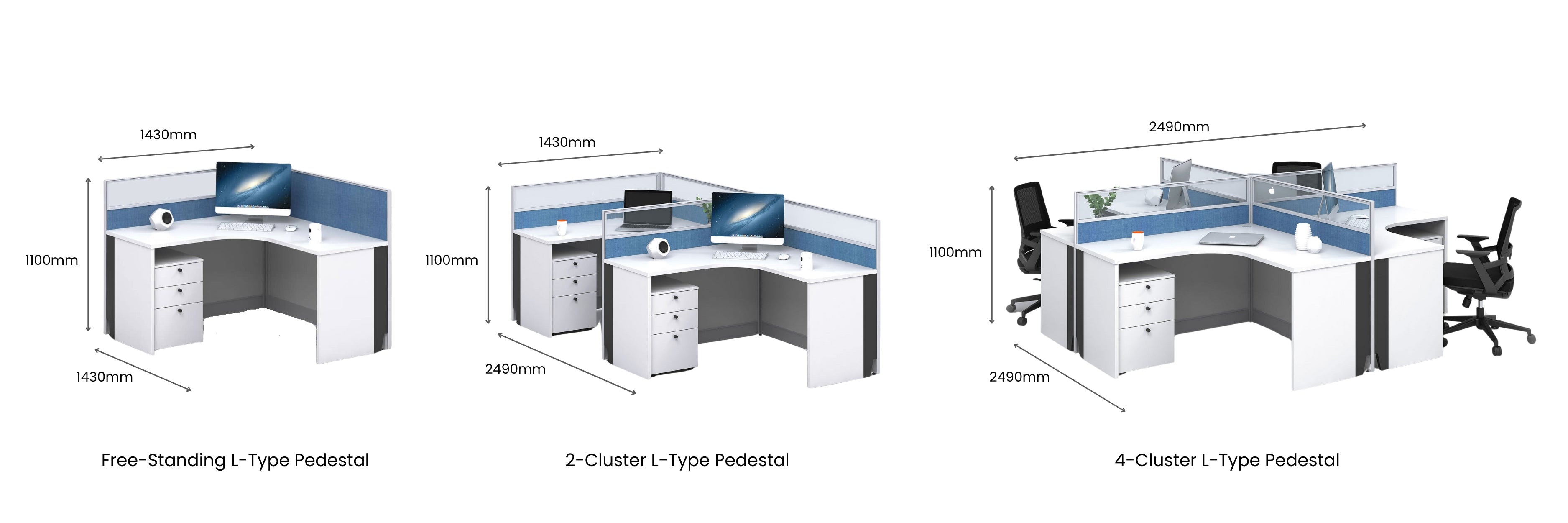 The N24 Panel Free-Standing L-Type Desk offers a spacious and ergonomic design, perfect for professionals needing ample surface area. It features durable panel partitions for semi-private setups, a sturdy L-shaped layout for efficiency, and integrated storage solutions. Ideal for optimizing workspace functionality while maintaining a sleek and modern aesthetic.