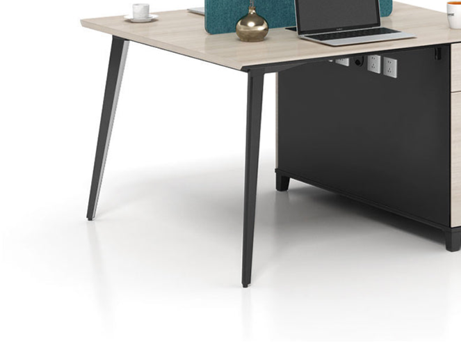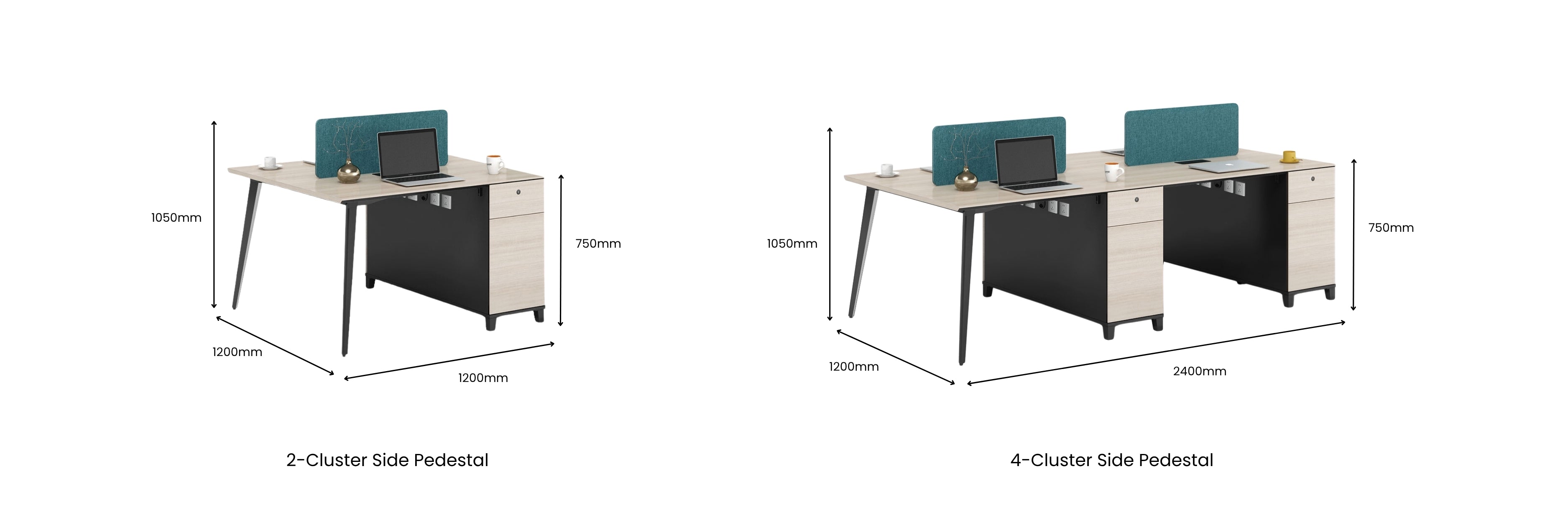 The N24 Contempo Cluster Desk series adds bold style to collaborative spaces with its wood-and-black contrast, balancing privacy and openness. Available in two or four person setups, its integrated side pedestals offer essential storage while maintaining a sleek, modern look perfect for sophisticated teamwork.