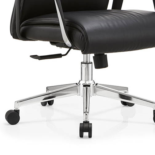 The N24 Quad Multi-Task Chair combines executive comfort with versatile functionality, featuring a plush seat, backrest, and smooth-rolling casters for ease of movement. Its durable chrome base and sleek black upholstery offer a professional look, ideal for both home and corporate workspaces.