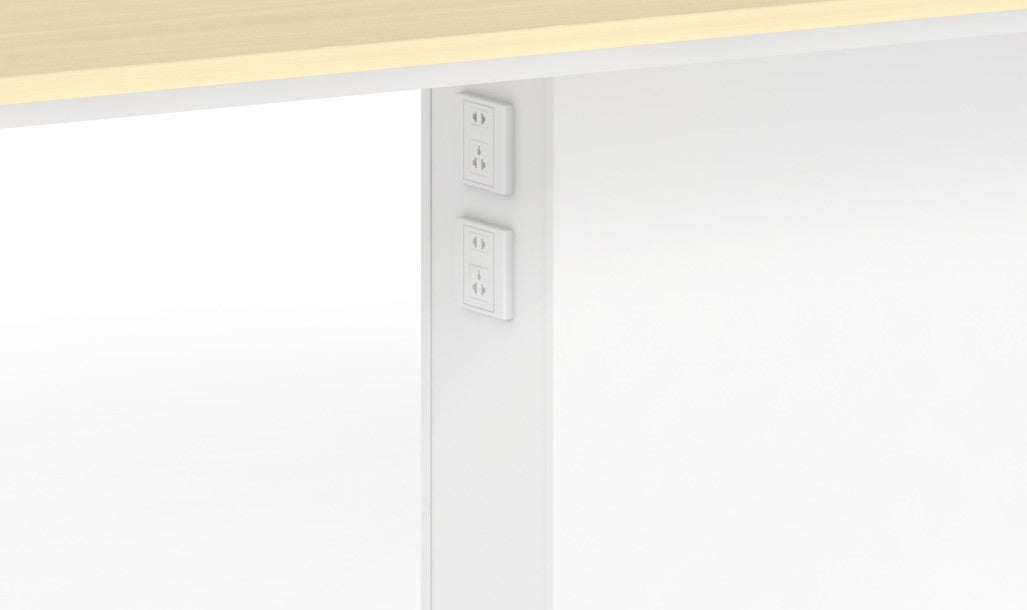 √ Table Top (25mm) & Panels in E1 grade MFC board in combination maple wood and white colors with 1.5mm & 2.0mm thk. two-colored PVC edging