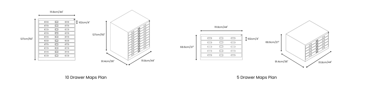 The Maps Plan Cabinet is a flat-file storage solution with 5 or 10-drawer configurations. Designed to protect large-format documents from damage while ensuring organized and convenient access.