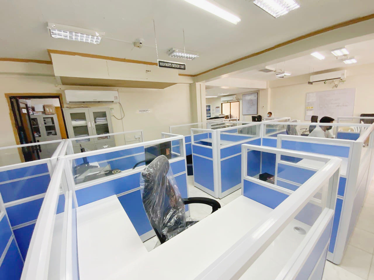 The Modular Edge: Contemporary Cubicles in Cool Grey
