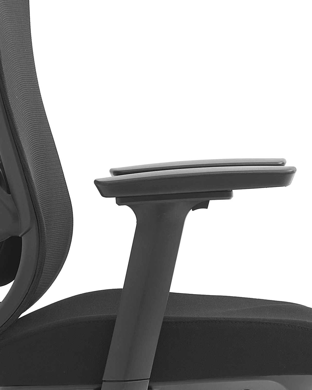 Multi-directional armrests with adjustments for height, forward/backward, and inward/outward angles.